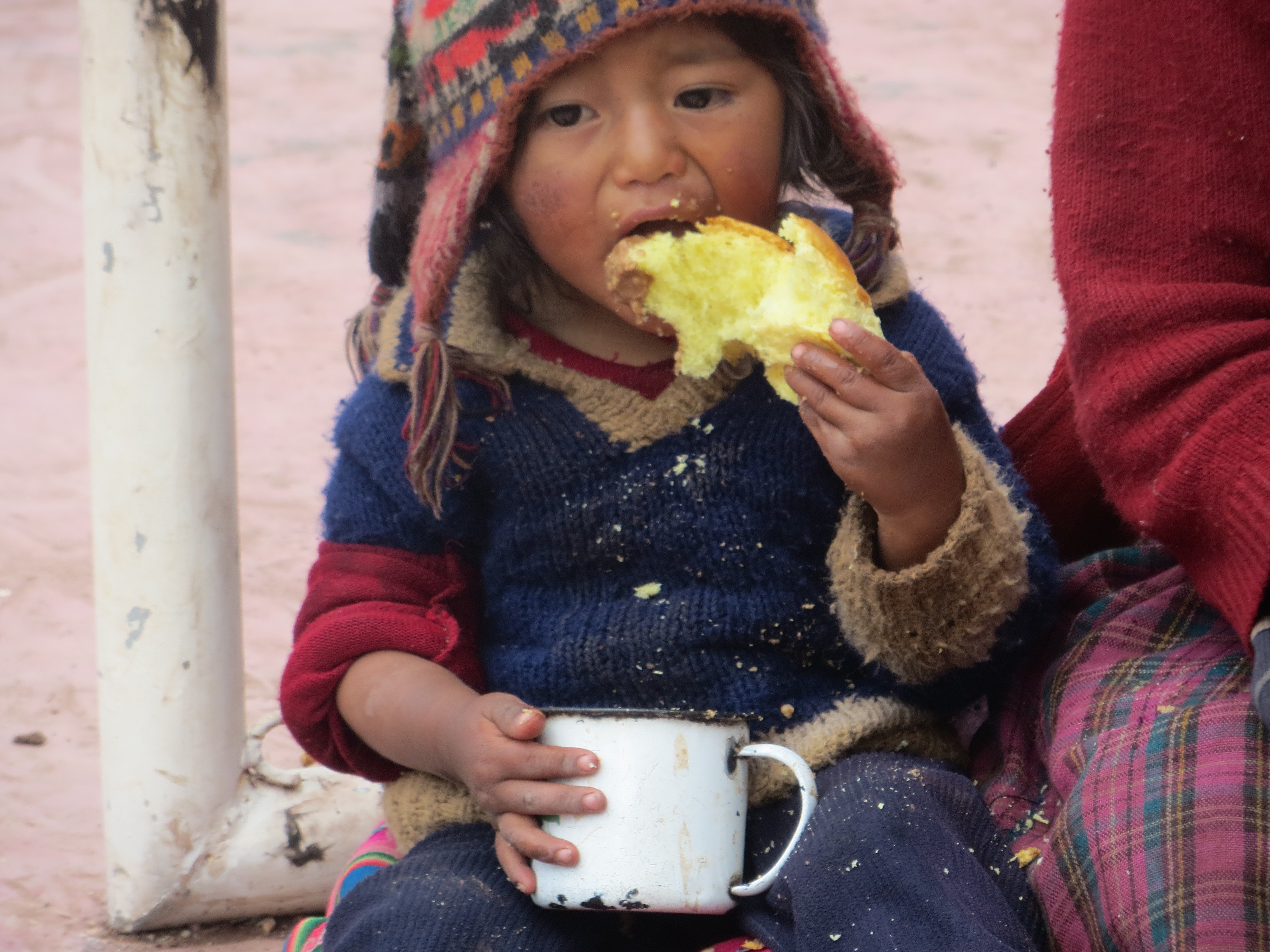 Feeding a young Peruvian.