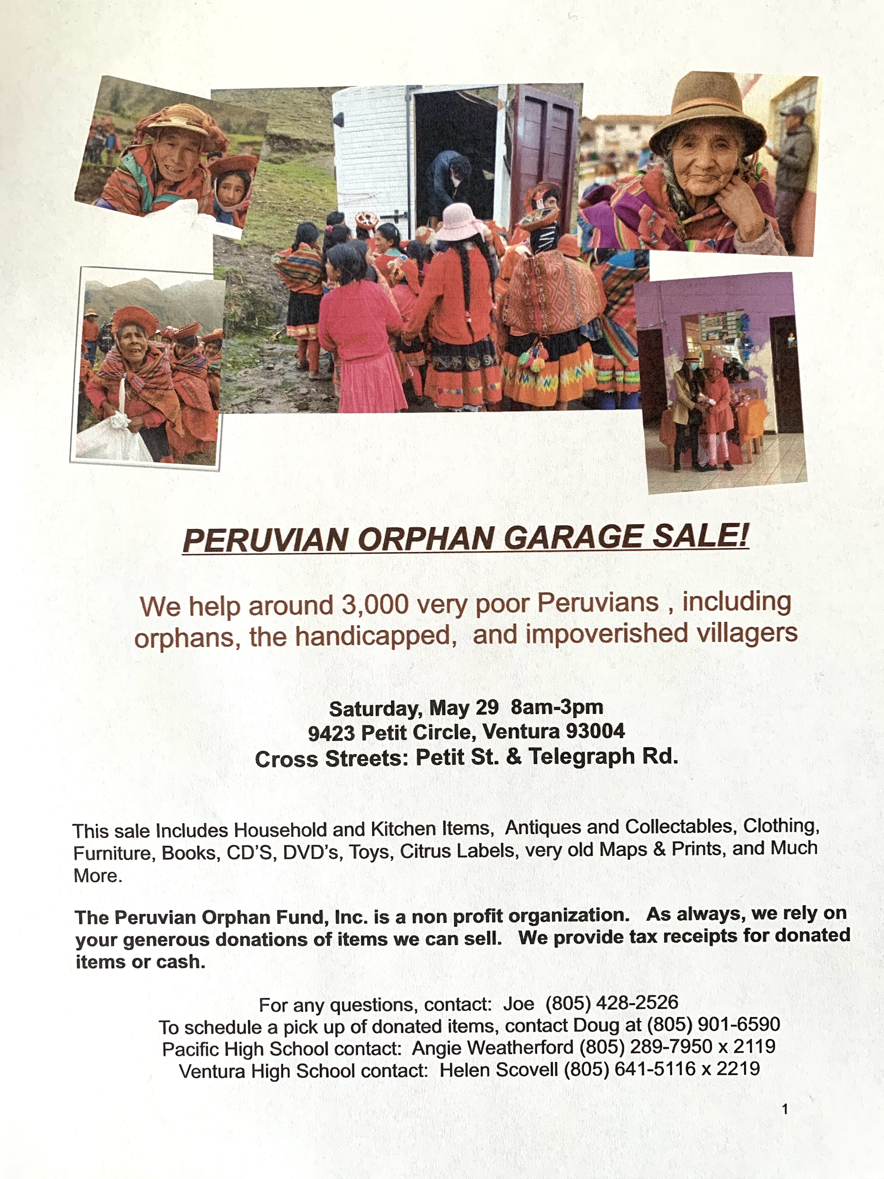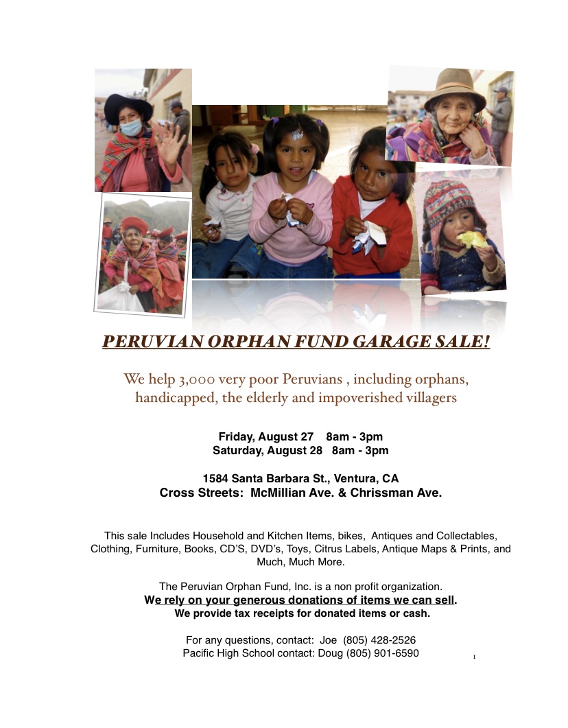 100% of the proceeds will aid Orphans, handicapped children and impoverished Villagers in and around of Cuzco, Peru.